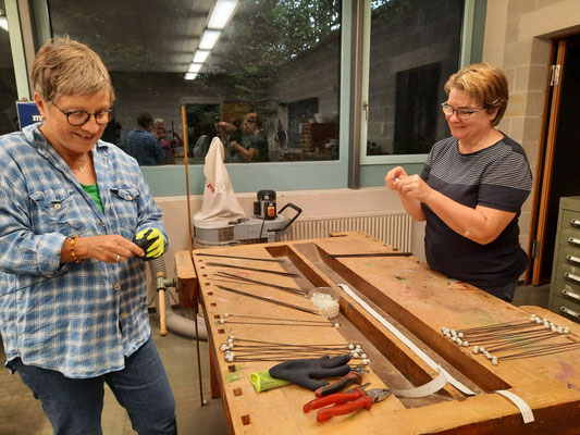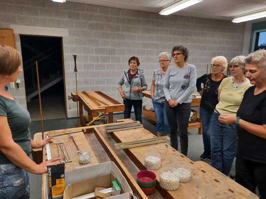 Am Freitagabend 19. September versammelten sich 10 kreative Frauen bei der Kirche. Mit drei Autos ging es weiter nach Herznach in den Werkraum der Schule. Nach sehr guter Einführung durch die